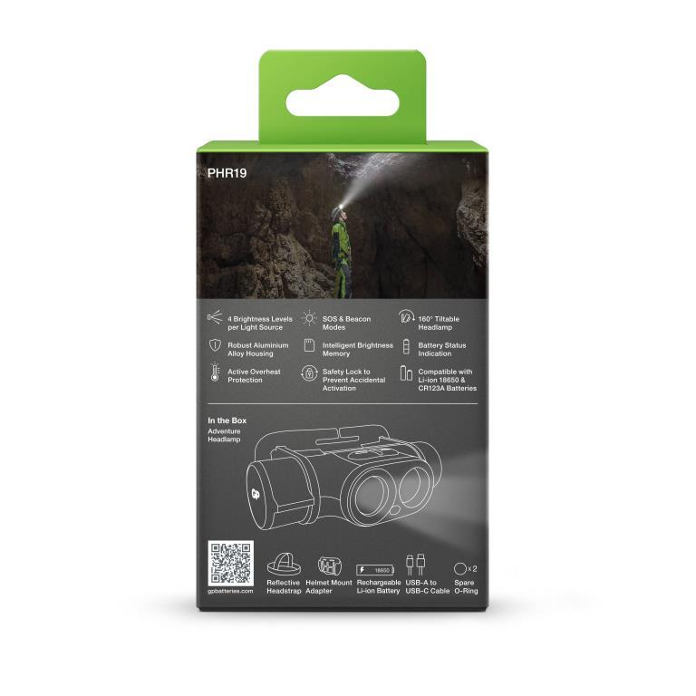 The pinnacle of outdoor adventure headlamps for any avid trekkers, adventurers and world explorers alike, the GP XPLOR headlamp PHR19 is a dual beam high-output headlamp, offering unrivaled brightness up to 1200 lumens, piercing the darkness to up to 110 meters. With 100-degree wide beam angle and 160-degree vertical tilt adjustments, you won’t miss any details at night. Durable, rugged, with IPX8-rated water resistance and 1.5 metres shockproof aluminium housing, this headlamp makes the perfect adventure partner. This powerhouse ensures you are never short of the light you need with up to 100 hours run time and a helmet mount adaptor that suits different applications. A performance-driven headlamp that understands your every need, key user-centered features include active overheat protection, battery status indication, safety lockout mode, and compatibility for both rechargeable and single-use batteries, enabling the smoothest user experience even in the most demanding environment